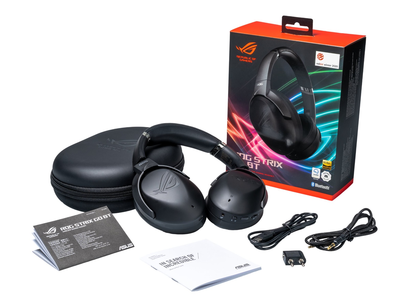 Геймърски слушалки с микрофон ASUS ROG Strix Go BT. Технология на свързване: Кабелна и безжична, Bluetooth.Препоръчителна употреба: Игри.Тегло: 300 гр.Цвят на продукта: Черен