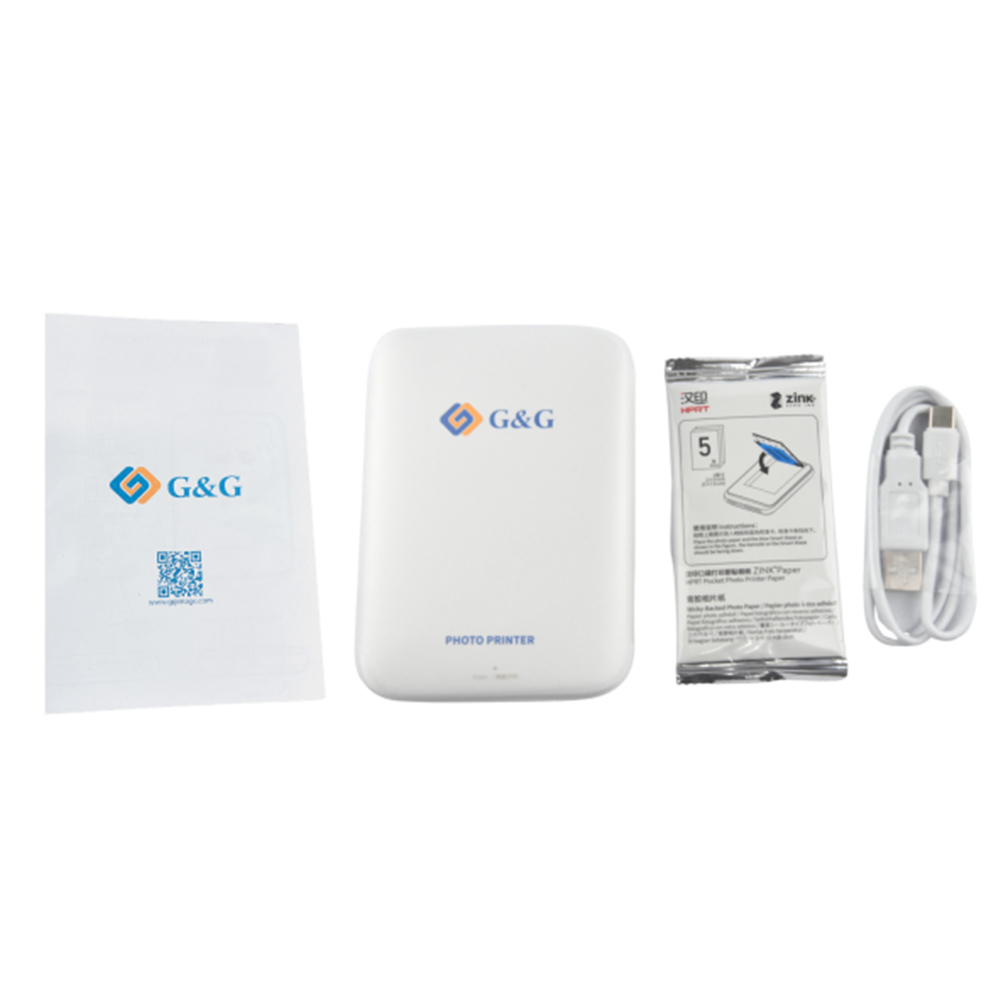 ДЖОБЕН ФОТО ПРИНТЕР - POCKET PHOTO PRINTER ZINK - G&G - PN GG-PP023Оригинален подарък за всеки!Преносимост : Изключително компактен и лек е, което го прави лесен за носене в джоб или чанта за употреба на партита, събития или в движение.Хартия с лепяща основа : Използваната хартия е с лепяща основа, което позволява отпечатаните снимки да се използват като стикери.Леснота на използване : Потребителите намират за лесно зареждане на хартия и работа чрез приложението за бързи и забавни разпечатки