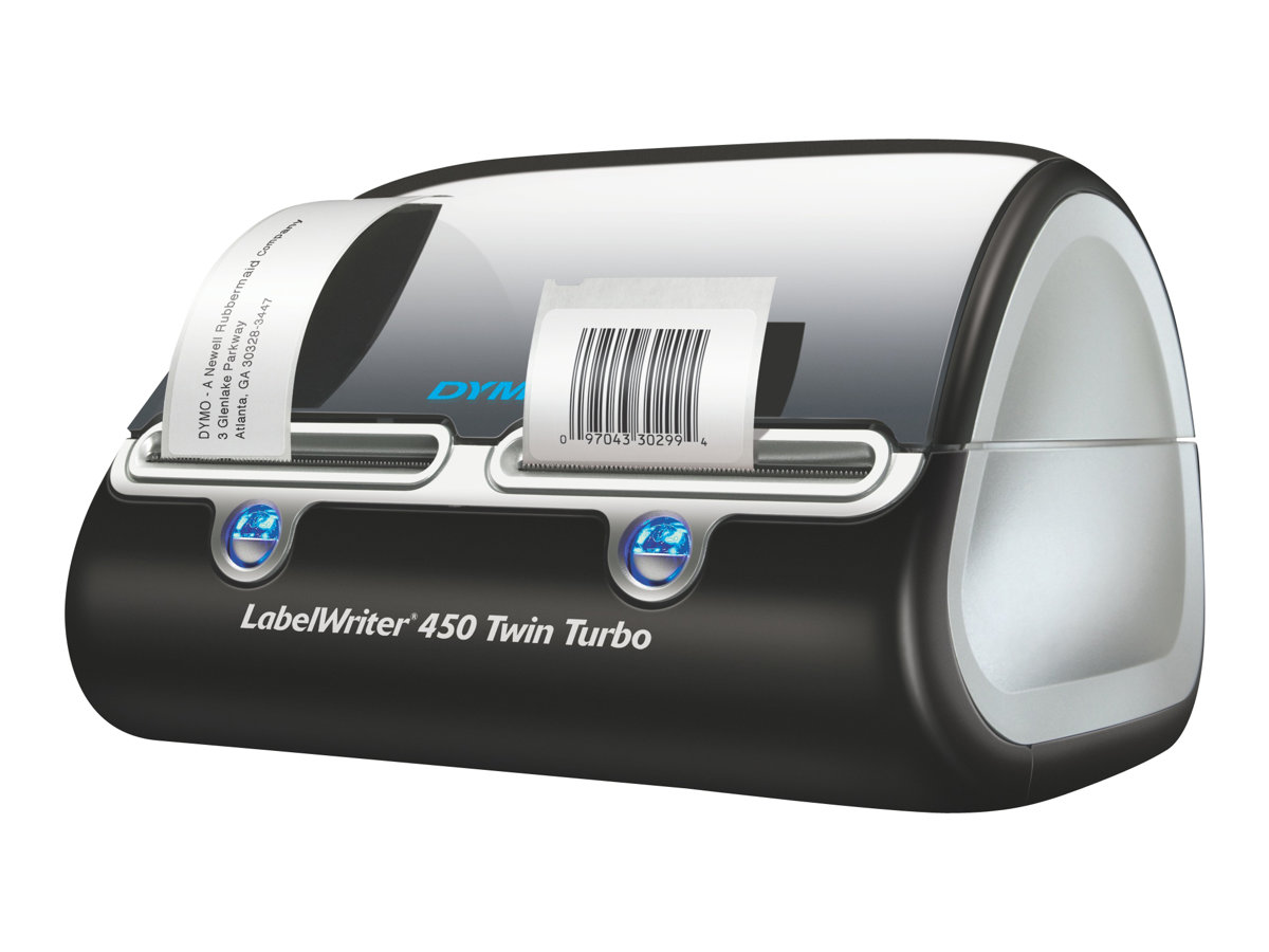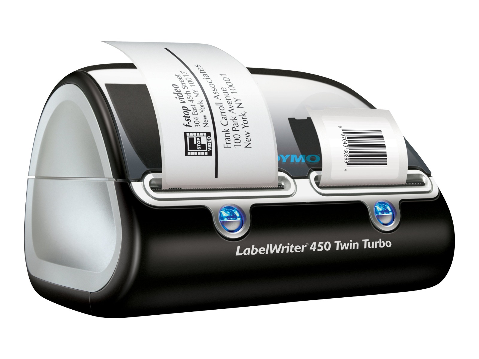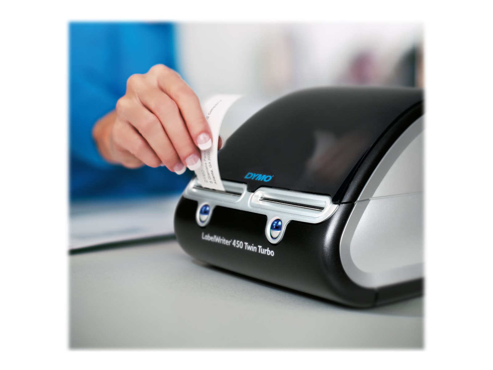 Етикетен принтер DYMO LabelWriter 450 Twin Turbo - директен термопечат - Ролка (6.2 см) - 600 x 300 dpi - до 71 етикета/мин - капацитет: 2 ролки - USB