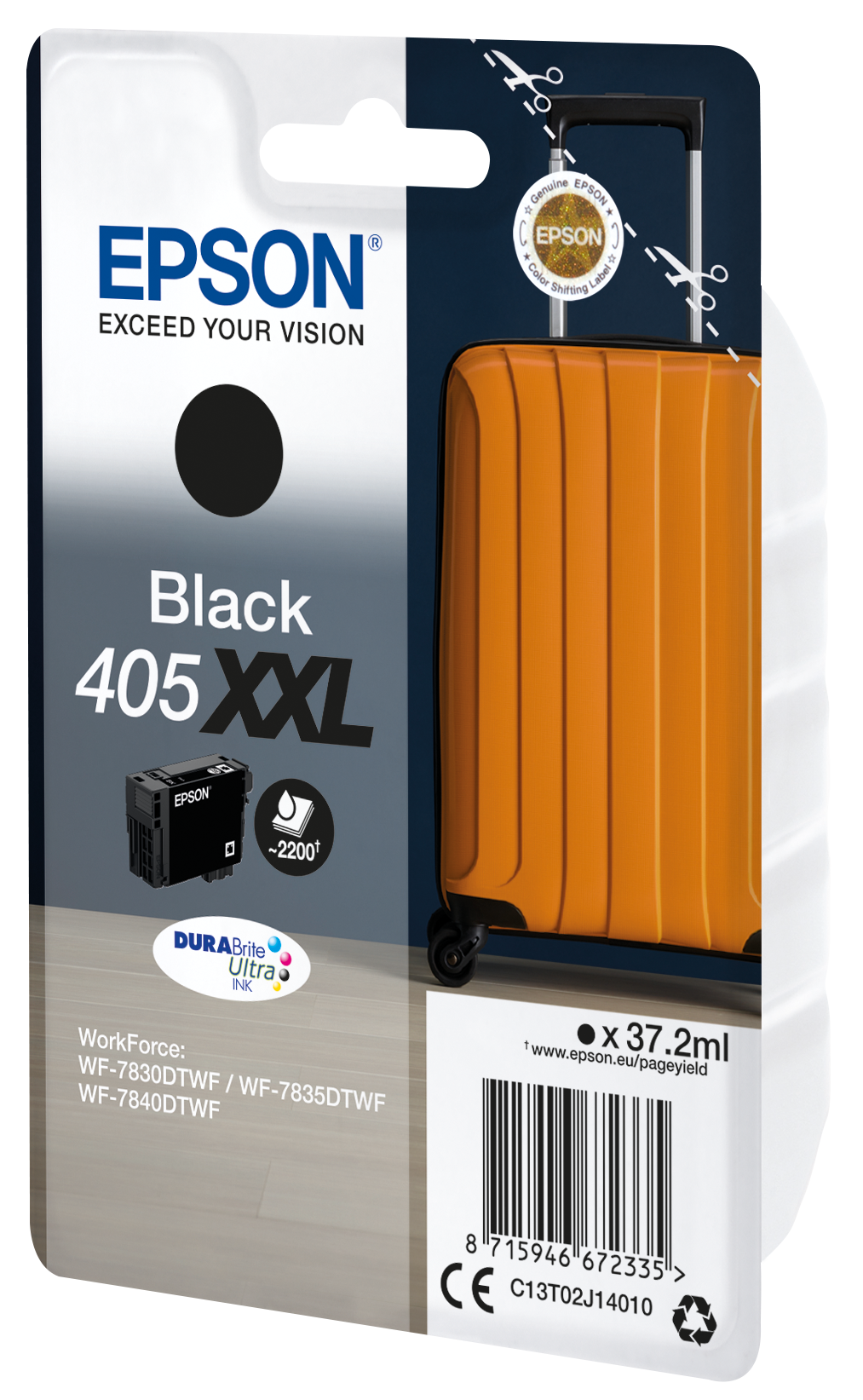 Epson 405XXL DURABrite Ultra Ink. Cartridge capacity: Extra (Super) High Yield, Black ink volume: 37.2 ml, Supply type: Single pack, Printing colours: Black, Quantity per pack: 1 pc(s)