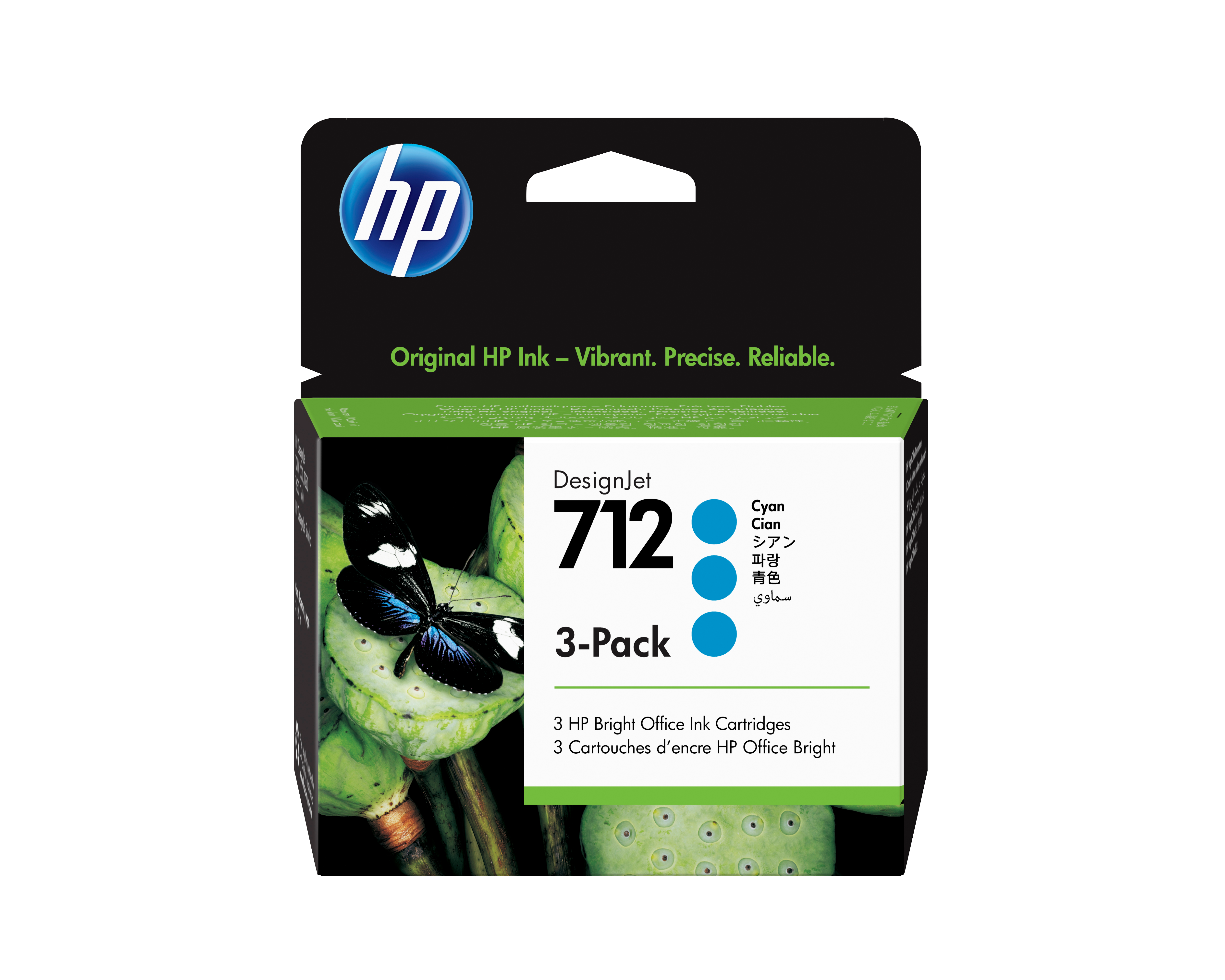 Комплект от 3 глави за HP DesignJet T200/T650/T630 Series - Ink - /712/ / 3ED77A - Cyan - 3-Pack - PN 3ED77A