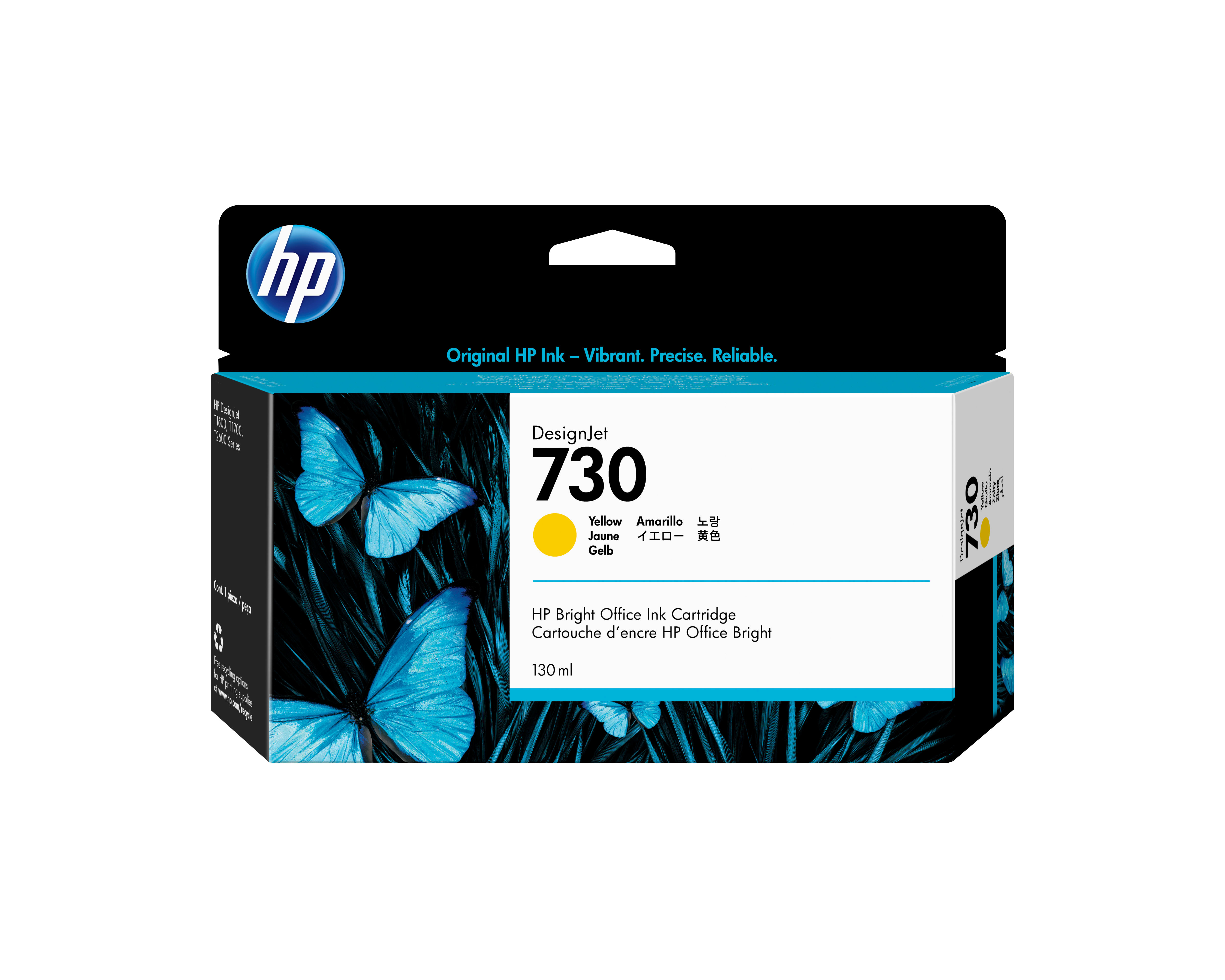 HP 730 130-ml Yellow DesignJet Ink Cartridge. Compatibility: HP DesignJet T1700, Print technology: Thermal inkjet, Printing colours: Yellow. Width: 202 mm, Depth: 129 mm, Height: 40 mm. Package width: 202 mm, Package depth: 129 mm, Package height: 40 mm. Master (outer) cases per pallet: 84 pc(s), Products per pallet: 1680 pc(s), Layers per pallet: 6 pc(s). Pallet dimensions (W x D x H) (imperial): 1016 x 1219.2 x 1501.1 mm (40 x 48 x 59.1"), Pallet weight (imperial): 458.5 kg (1010.8 lbs)