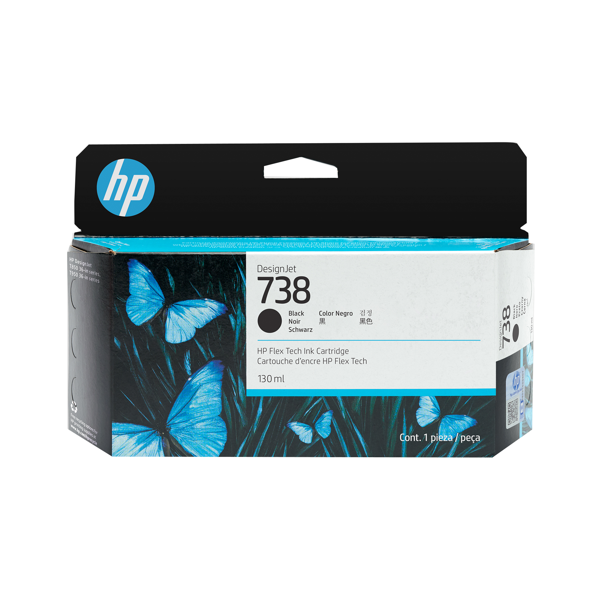 HP 738 130-ml Black DesignJet Ink Cartridge. Compatibility: HP DesignJet T850, T950, Print technology: Thermal inkjet, Printing colours: Black. Width: 202 mm, Depth: 129 mm, Height: 40 mm. Package width: 202 mm, Package depth: 129 mm, Package height: 40 mm. Master (outer) cases per pallet: 84 pc(s), Products per pallet: 1680 pc(s), Pallet gross weight: 453.4 kg. Pallet dimensions (W x D x H): 1219 x 1016 x 1501 mm, Pallet dimensions (W x D x H) (imperial): 1218.9 x 1016 x 1501.1 mm (48 x 40 x 59.1")