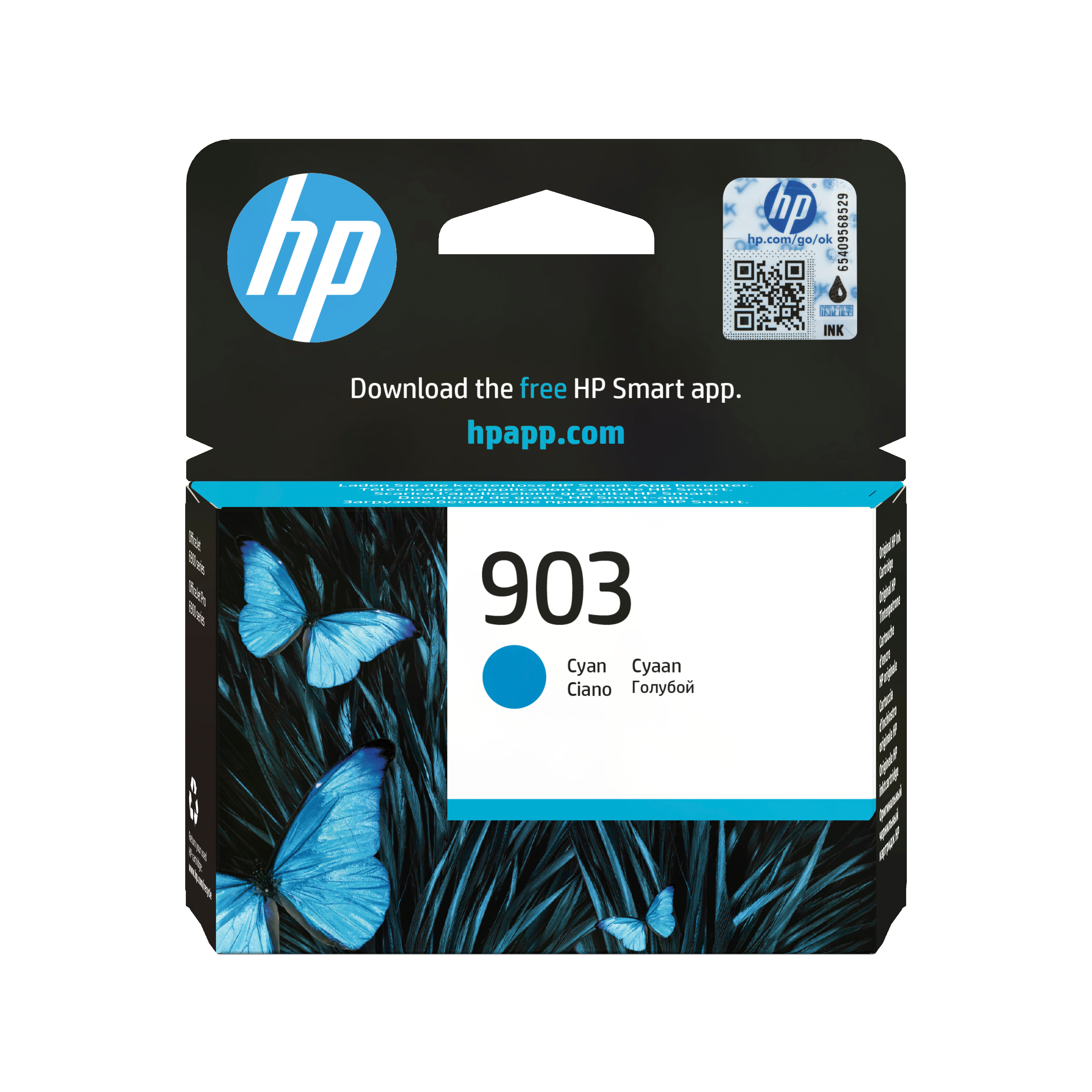 HP 903 Cyan Original Ink Cartridge. Colour ink type: Pigment-based ink, Cartridge capacity: Standard Yield, Colour ink page yield: 315 pages, Colour ink volume: 4 ml, Printing colours: Cyan, Quantity per pack: 1 pc(s)