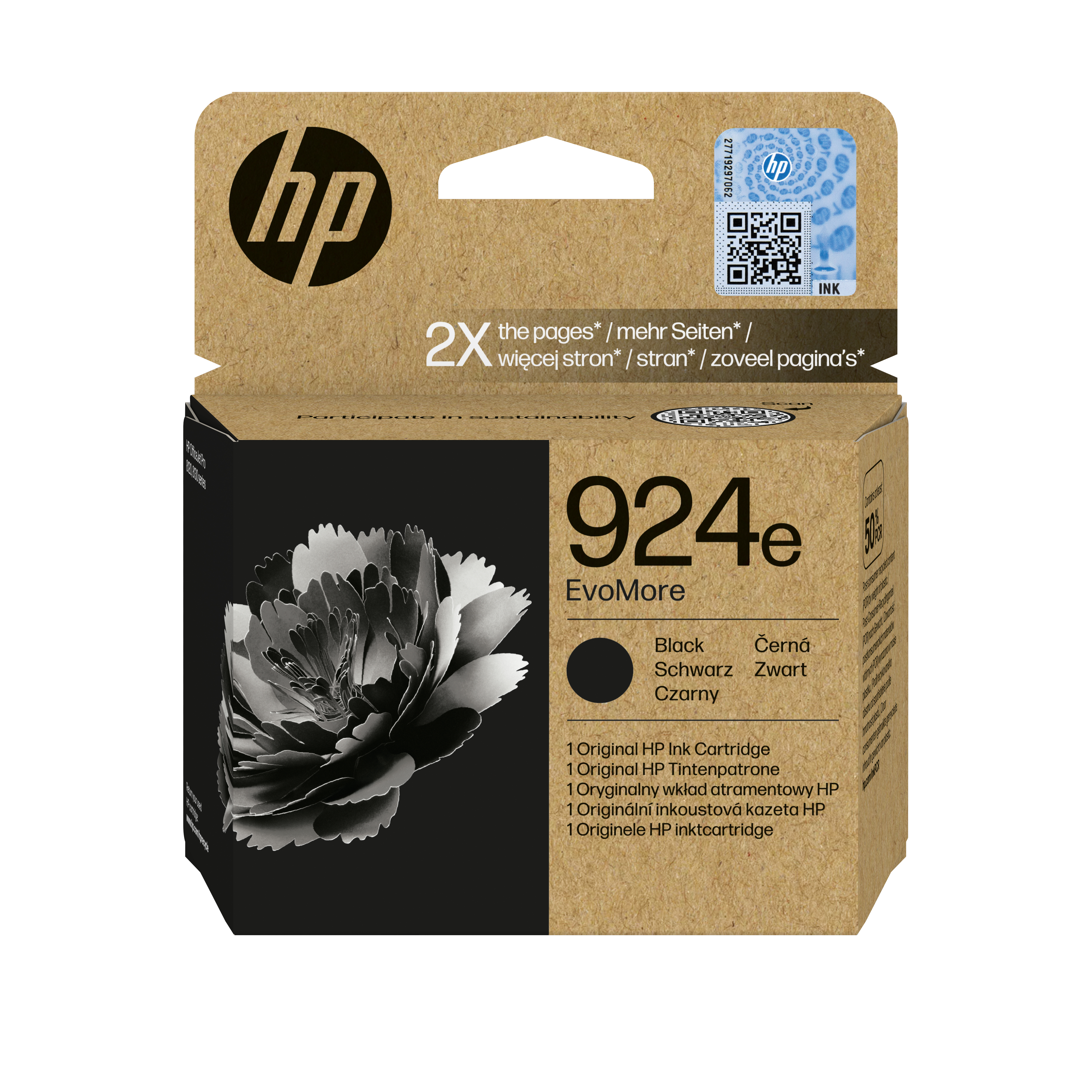HP 924e EvoMore Black Original Ink Cartridge. Cartridge capacity: High (XL) Yield, Supply type: Single pack, Printing colours: Black, Quantity per pack: 1 pc(s), Black ink page yield: 1000 pages