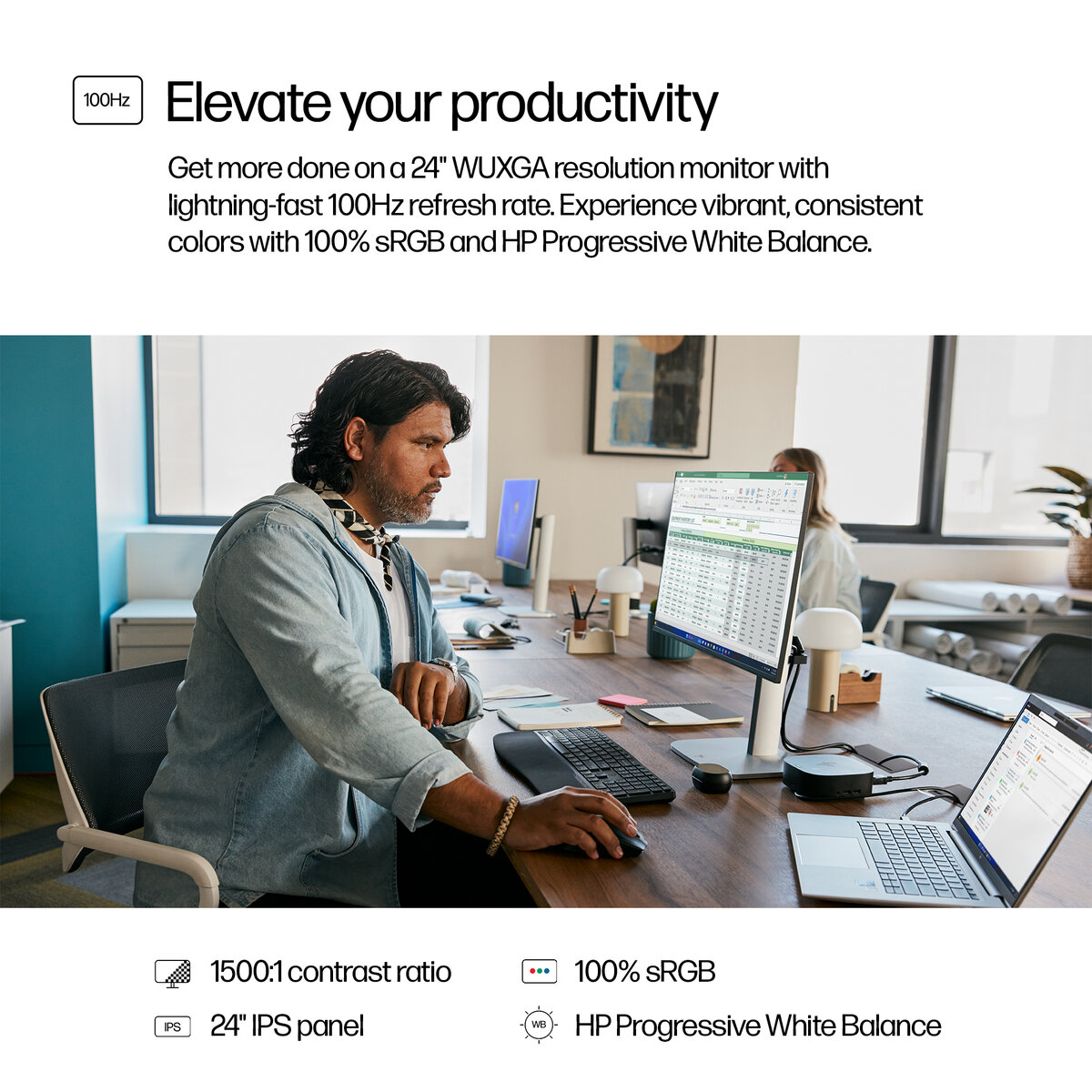HP Series 5 Pro 24-инчов WUXGA монитор - 524pДиагонал на дисплея: 61 см (24"), Резолюция на дисплея: 1920 x 1200 пиксела, HD тип: WUXGA, Технология на дисплея: LCD, Повърхност на дисплея: Матова, Време за реакция: 5 мс, Съотношение на страните: 16:10, Ъгъл на гледане, хоризонтален: 178°, Ъгъл на гледане, вертикален: 178°. Вграден USB хъб, Версия на USB хъба: 3.2 Gen 1 (3.1 Gen 1). VESA монтаж, Регулиране на височината. Цвят на продукта: Черен