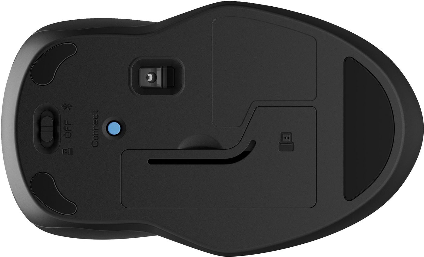 HP 250 - Мишка - оптична - 3 бутона - безжична - 2.4 GHz, Bluetooth 5.0 - чернаДвойна мишка HP 250. Форм фактор: За двете ръце и лява ръка. Интерфейс на устройството: Bluetooth + USB Тип-A, Резолюция на движение: 1600 DPI, Брой бутони: 3, Тип скролване: Колелце. Захранване: Батерии. Цвят на продукта: Черен