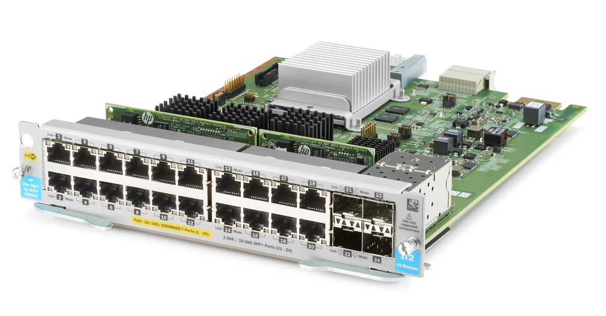 HPE - Разширителен модул - Gigabit Ethernet (PoE+) x 20 + Gigabit Ethernet / 10 Gigabit SFP+ x 4 - за HPE Aruba 5406R, 5406R 16, 5406R 44, 5406R 8-портов, 5406R zl2, 5412R, 5412R 92, 5412R zl2