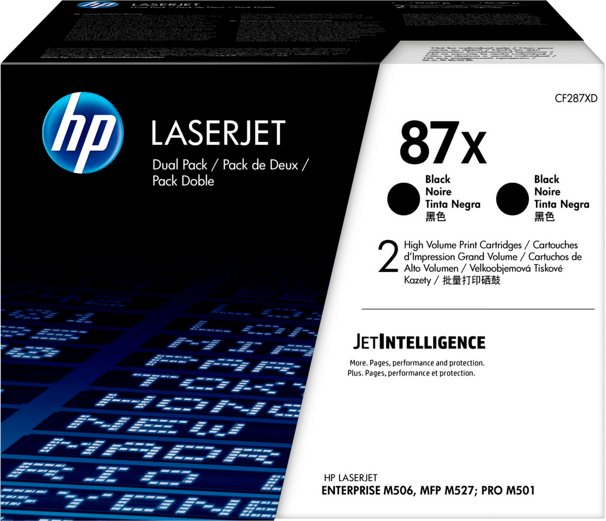 HP 87X 2-pack High Yield Black Original LaserJet Toner Cartridges. Black toner page yield: 36000 pages, Printing colours: Black, Quantity per pack: 2 pc(s)