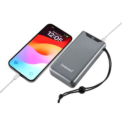Intenso F20000 външна батерия - Li-pol - 24-пинов USB-C, USB тип A - 20W - Сив - PN 7332054Външната батерия Intenso F20000 е проектирана да зарежда ефективно вашите устройства със своята здрава литиево-полимерна батерия. С капацитет от 20 000 mAh, тя осигурява достатъчно захранване за вашия таблет или мобилен телефон, гарантирайки, че ще останете свързани по-дълго без прекъсвания. Външната батерия поддържа технологии за бързо зареждане като Qualcomm Quick Charge 3.0 и Power Delivery 3.0, което позволява бързо презареждане на вашите устройства. Оборудвана с двойни изходни конектори, включително USB-C и USB Type-A, потребителите могат лесно да зареждат няколко устройства едновременно. LCD индикаторът помага за наблюдение на оставащия заряд на батерията, а различните вградени защити осигуряват безопасно и надеждно зареждане.КапацитетВъншната батерия е с капацитет 20 000 mAh, което осигурява по-дълги сесии на зареждане на таблети и мобилни телефони без чести презареждания.Възможности за бързо зарежданеС поддръжката на Qualcomm Quick Charge 3.0 и Power Delivery 3.0, устройствата могат да се зареждат по-бързо, намалявайки времето на престой.Опции за два изходаУстройството включва както USB-C, така и USB Type-A изходни портове, което позволява на потребителите удобно да зареждат две устройства едновременно.Удобен за потребителя интерфейсLCD индикаторът осигурява ясен поглед върху оставащия живот на батерията, което улеснява препознаването кога да презаредите външната батерия.Защитни меркиВградените защити срещу късо съединение, презареждане и пренапрежение осигуряват безопасна употреба, а каишката за ръка добавя преносимост.