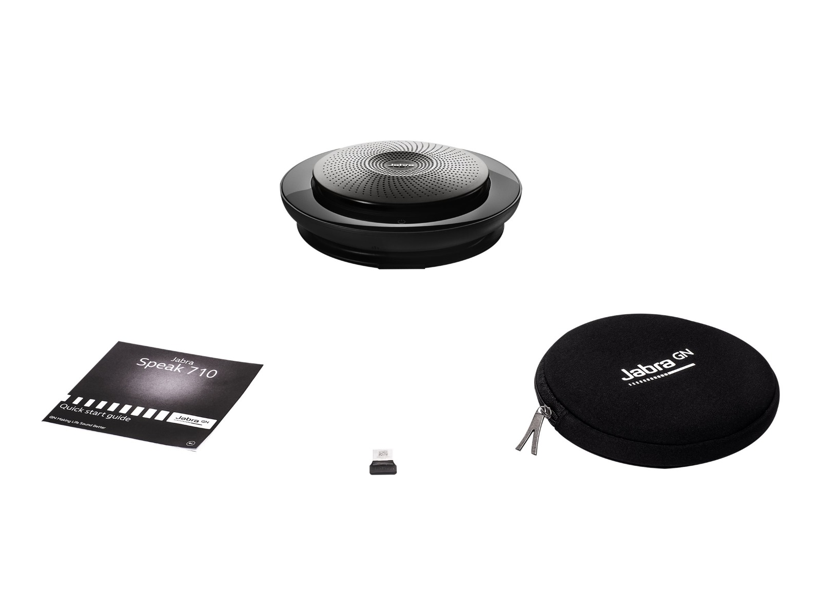 Jabra SPEAK 710 - Високоговорител за свободни ръце - Bluetooth - безжичен - USBБезжична свободаИзпитайте истинска мобилност с безжичната свързаност на Jabra SPEAK 710. С технологията Bluetooth 4.2, този високоговорител предлага безпроблемна връзка с вашите устройства, позволявайки ясна аудио комуникация до 30 м от вашия компютър.Интуитивно управлениеJabra SPEAK 710 е проектиран за лесна употреба, с ясни контроли за приемане и прекратяване на повиквания, заглушаване и регулиране на силата на звука. Този интерфейс гарантира, че управлението на вашите повиквания и аудио е без усилие, което го прави подходящ както за професионална, така и за лична употреба.Превъзходно качество на звукаОборудван с всепосочен микрофон и усъвършенствани аудио профили като A2DP, AVRCP, HFP и HSP, Jabra SPEAK 710 осигурява висококачествен звук. Независимо дали говорите по телефона или слушате музика, можете да очаквате чист и ясен звук, който подобрява всяко взаимодействие.