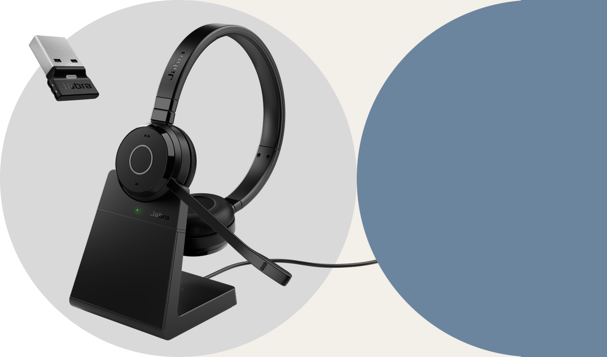 Jabra Evolve 65 TE Stereo - Слушалки - на ушите - Bluetooth - безжични - USB-A чрез Bluetooth адаптер - шумоизолиращи - UC сертифицираниДо 16 часа време за разговори с батерияЧудесен за безжична работаБезжичен обхват до 30 м/100 футаСвържете се с до 2 устройстваПовишена издръжливост2-годишна гаранцияПасивно шумопотисканеВградена светлина за заетостСтил на носене на ухотоДо 15 дни в режим на готовност