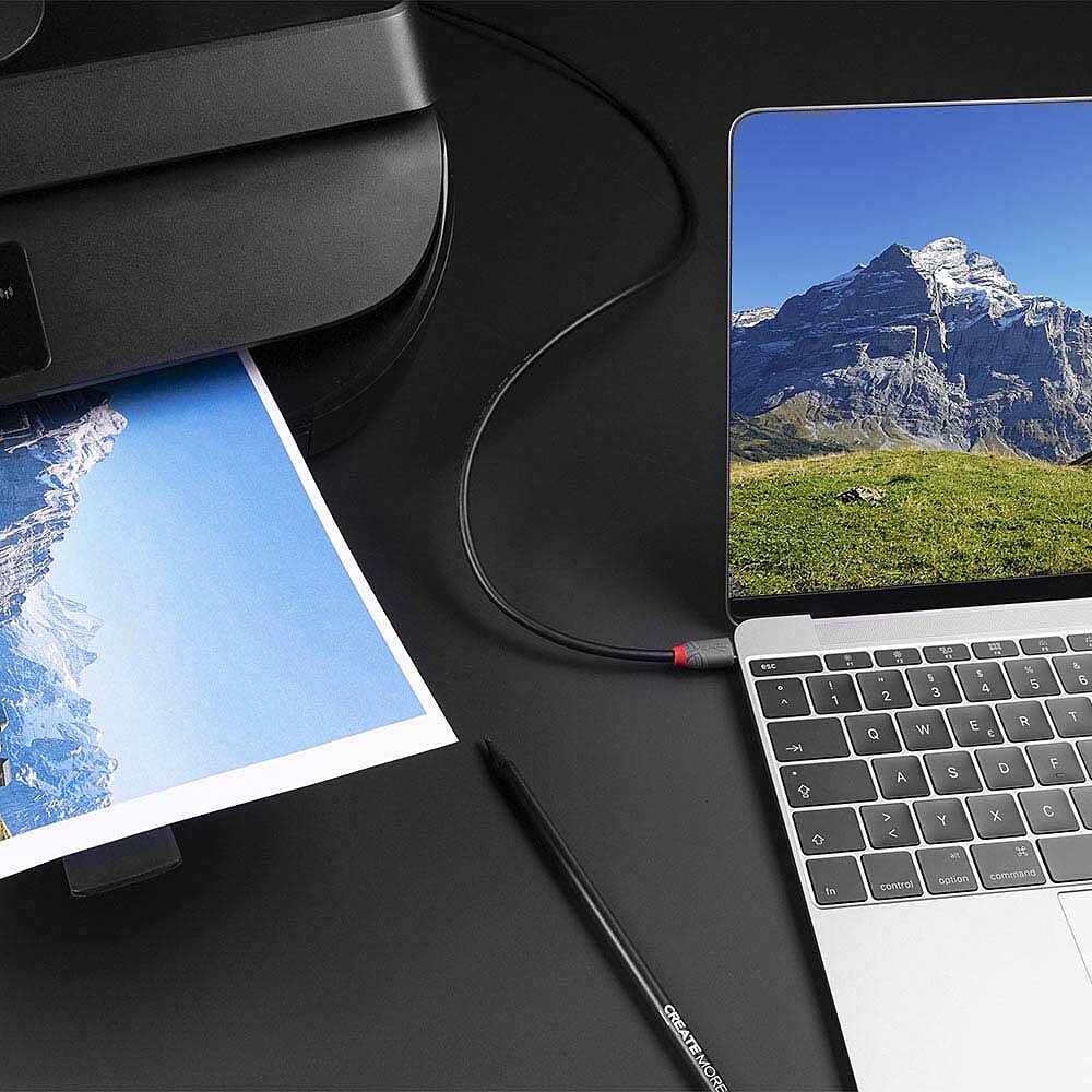 КАБЕЛ USB LINDY - USB-B to USB-C - 3,0 m - Black - PN 36943От концепцията за кабелна връзка Lines, разработена от Lindy, кабелите Anthra Line USB 2.0 тип A до B са професионалният избор за високопроизводителни връзки в комерсиални AV и IT инсталации. Кабелите Anthra Line USB 2.0 са първокласни връзки, които се отличават с двойно екранирана конструкция с медни проводници за производителност и устойчивост на корозия. Висококачествените позлатени контакти и конектори поддържат оптимална цялост на сигнала и максимална надеждност. Поддържат се скорости на трансфер на данни до 480 Mbps за бърз и безпроблемен трансфер на големи обеми данни.Технически детайли СъединителиКонектор A: USB 2.0 тип C мъжкиКонектор B: USB 2.0 тип B мъжкиМатериал на корпуса: PVCПокритие на конектора: никелКонструкция на щифта:C: Мед с висока проводимостБ: МесингПокритие на щифта: златоРазмери (прибл.) ШxДxВ:C: 10.9x28.3x7.2mm (0.43x1.11x0.28in)B: 11.8x47x10.2mm (0.46x1.85x0.4in) Кабелна конструкцияДължина: 3 м (9,84 фута)