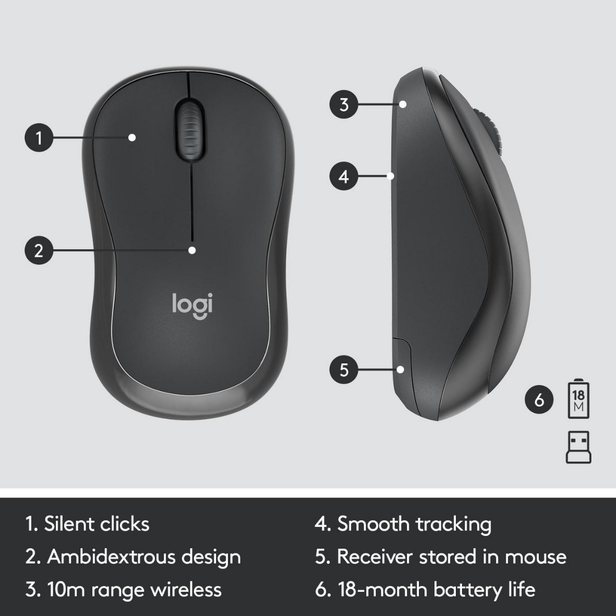 Комплект мишка и клавиатура Logitech MK295 DE, безжичен, Графит, немски - PN 920-009794Безжично удобствоИзпитайте свободата на безжичната свързаност с 2,4 GHz интерфейс, който ви позволява да работите или да играете на разстояние до 10 м от вашия компютър без бъркотията от кабели.Повишена производителностС опции за регулиране на височината, цифрова клавиатура и специални клавиши за имейл, заглушаване, възпроизвеждане/пауза и сила на звука, този комплект клавиатура и мишка е проектиран да повиши вашата продуктивност.Безшумна работа - Работете концентрирано, без да се разсейватеНасладете се на тихо работно пространство с Logitech MK295 Silent, включващ тихи клавиши и щраквания на мишката, за да минимизирате разсейването и да създадете по-удобна среда за всички около вас.Нашата иновативна SilentTouch технология премахва над 90% от шума на бутоните при писане с клавиатура и кликане с мишка, в сравнение със стандартния ни комплект МК270 (най-добре продаваният в света комплект от мишка и клавиатура според независими данни за продажби (в единици), събрани от основните пазари: CA, CN, FR, DE, ID, KR, RU, SE, TW, TH, TR, UK, US (Април'18 - април'19). Съдържание на продуктаКлавиатура с 2 батерии АААМишка с 1 батерия ААUSB приемникПотребителска документация