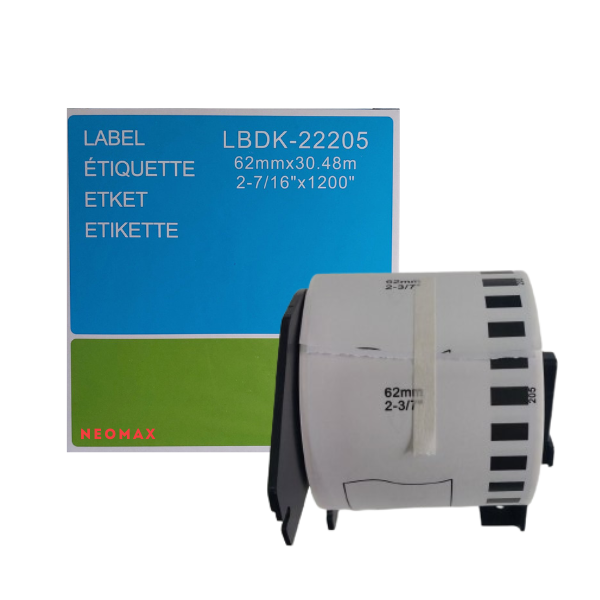 ЛЕНТА ЗА ЕТИКЕТНИ ПРИНТЕРИ BROTHER ТИП QL - CONTINUOUS PAPER TAPE - 62 mm x 30,48 m - DK22205 (DK-22205) - PN LBDK-22205 - NEOMAX