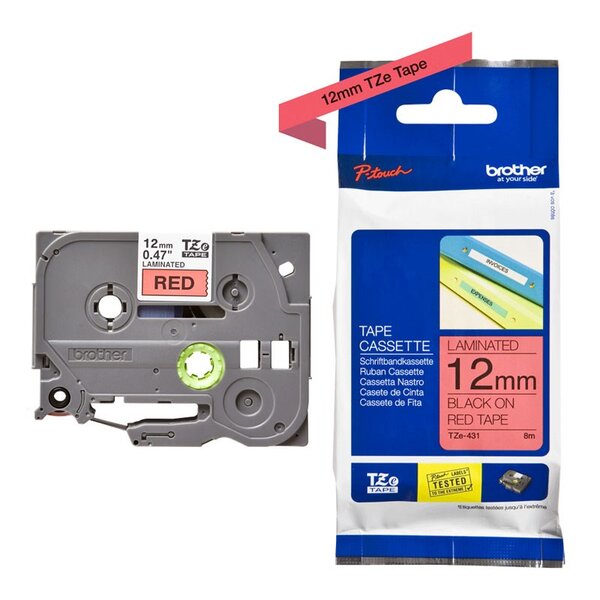 ЛЕНТА ЗА ЕТИКЕТНИ ПРИНТЕРИ BROTHER ТИП TZ - 12 mm x 8,0 m - BLACK ON RED TAPE - PN TZE431 (TZE-431)
