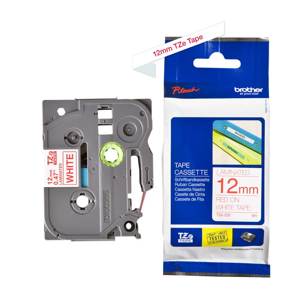 ЛЕНТА ЗА ЕТИКЕТНИ ПРИНТЕРИ BROTHER ТИП TZ - 12 mm x 8,00 m - RED ON WHITE TAPE - PN TZE-232 (TZE232)