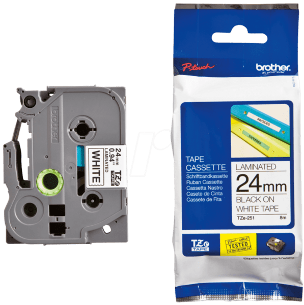 ЛЕНТА ЗА ЕТИКЕТНИ ПРИНТЕРИ BROTHER ТИП TZ - 24 mm x 8,00 m - BLACK ON WHITE TAPE - PN TZE251 (TZE-251)