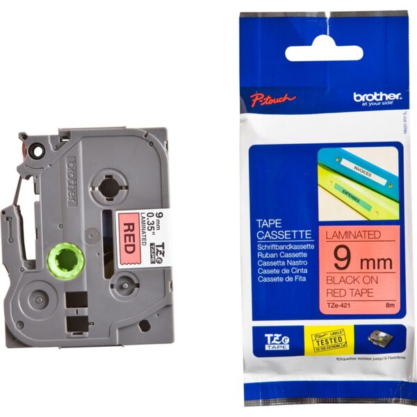 ЛЕНТА ЗА ЕТИКЕТНИ ПРИНТЕРИ BROTHER ТИП TZ - 9 mm x 8,00 m - BLACK ON RED TAPE - PN TZE421 (TZE-421)