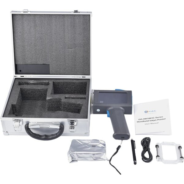 GG-HH1001C е мощен и универсален ръчен мастилено-струен принтер, идеален за мобилно маркиране и етикетиране в производствени среди, складове, логистика, събития, маркиране за сигурност и други. Лекият му, ергономичен дизайн осигурява удобна и безопасна употреба, дори и при продължителни периоди от време. С резолюция на печат от 300 dpi, GG-HH1001C осигурява отчетливи, висококонтрастни разпечатки върху различни материали, включително хартия, картон, алуминиево фолио, метал, дърво и пластмаса. Благодарение на бързосъхнещото UV мастило, разпечатките са практически безупречни. Принтерът поддържа до 5 реда текст с максимална височина на шрифта 12,7 мм, включително текст, числа, QR кодове, баркодове, символи, изображения и кодове за дата/час.Ергономичен дизайн:Структурата на кожените зърна осигурява сигурен захват при продължителна употреба в индустриална среда.Автоматично разпознаване на мастило:Автоматично разпознава мастило на водна основа (абсорбиращи повърхности) и бързосъхнещо мастило (неабсорбиращи повърхности) и настройва правилните съотношения за максимална гъвкавост.Подходящ за различни повърхности:Лесно печатане върху всякакви повърхности, включително картон, дърво, стъкло, керамика, алуминиево фолио, PVC, метал и други.Усъвършенствана технология за печат:Патентованите мастилени касети и оптимизираните технологии за печатащи глави на G&G осигуряват постоянно чисти резултати с висока резолюция.Съдържание на пакета:Алуминиева чанта за носене с пяна, ръчен мастилено-струен принтер GG-HH1001C, капак на печатащата глава, кабел за зареждане, приставка за печат върху извити повърхности (напр. чаши), писалка за сензорен екран, бързосъхнеща черна касета с мастило и печатно ръководство.