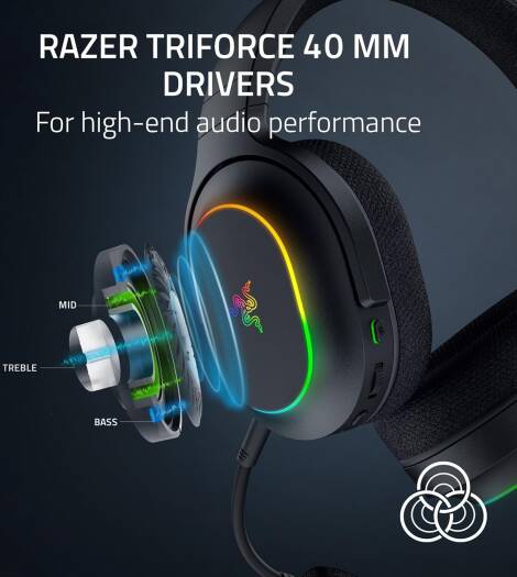 Геймърски слушалки Razer Barracuda X Chroma, 40 мм Razer TriForce, подвижен Razer HyperClear кардиоиден микрофон, 7.1 съраунд звук, 6-зонно осветление на наушниците, черни | RZ04-05220100-R3M1