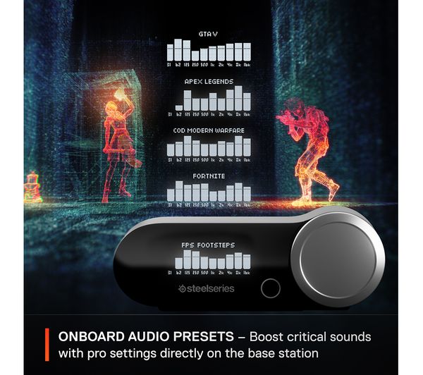 Висококачествен гейминг звук с активно шумопотисканеАктивно шумопотискане (ANC) с опция за прослушванеВисококачествени неодимови магнитни драйвери с висока резолюцияШумопотискащ микрофон с изкуствен интелект и прибиращ се дизайнНеограничено време за игра с 2 батерии с възможност за бърза смяна + бързо зарежданеЕдновременно 2.4GHz и Bluetooth смесва звук от игри и мобилни устройстваДвойните USB връзки поддържат PC, Mac, PlayStation, Switch, VR и другиШумопотискащ микрофон с изкуствен интелект и прибиращ се дизайн360° пространствено аудио за PC (Sonar Software) и PS5 (Tempest 3D аудио)