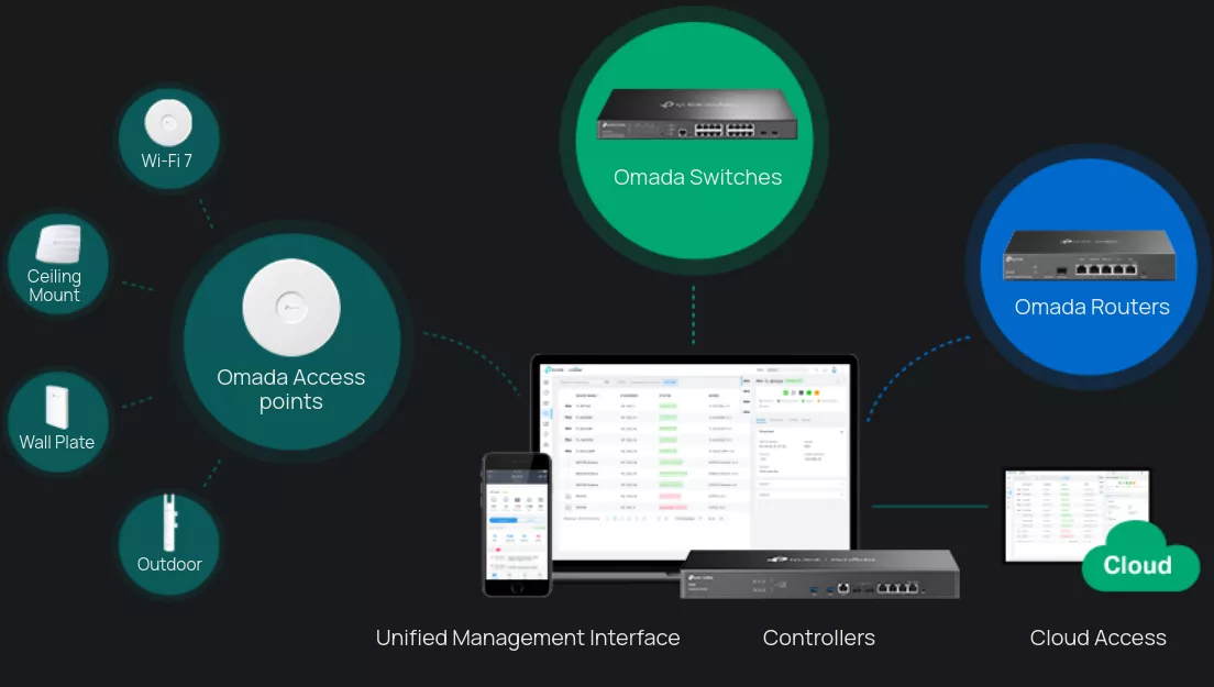 Централизирано управление: за до 1000 точки за достъп Omada, 200 комутатора Omada и 100 рутера Omada. *2× 10GE SFP+ слота, 4× GE RJ45 порта и 2× USB 3.0 порта.Резервните захранвания предлагат надеждна мрежова архитектура.Безплатен достъп до облака с приложението Omada или уеб интерфейса от всяко място и по всяко време.Локалното управление на устройствата позволява локално наблюдение и управление.Лесното за използване табло за управление и мрежовата топология в реално време правят мониторинга на мрежата лесен.Пакетното управление и управлението на множество обекти са от полза за поддръжката на мрежата.