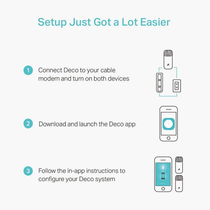 Deco използва система от устройства, за да постигне безпроблемно Wi-Fi покритие в целия дом — елиминирайте зоните със слаб сигнал веднъж завинаги!С усъвършенстваната технология Deco Mesh, устройствата работят заедно, за да образуват обединена мрежа с едно мрежово име. Устройствата автоматично превключват между Deco устройствата, докато се движите из дома си, за възможно най-бързи скорости.Комплект от два устройства Deco M4 осигурява Wi-Fi покритие на площ до 2800 квадратни фута. А ако това не е достатъчно, просто добавете още устройства Deco към мрежата по всяко време, за да увеличите покритието.Deco M4 осигурява бърза и стабилна връзка със скорости до 1167 Mbps и работи с големи доставчици на интернет услуги (ISP) и модеми.Deco може да обработва трафик дори от най-натоварените мрежи, осигурявайки безпроблемна връзка за до 100 устройства.Родителският контрол ограничава времето онлайн и блокира неподходящи уебсайтове според уникалните профили, създадени за всеки член на семейството.Настройката е по-лесна от всякога с приложението Deco, което ще ви преведе през всяка стъпка.
