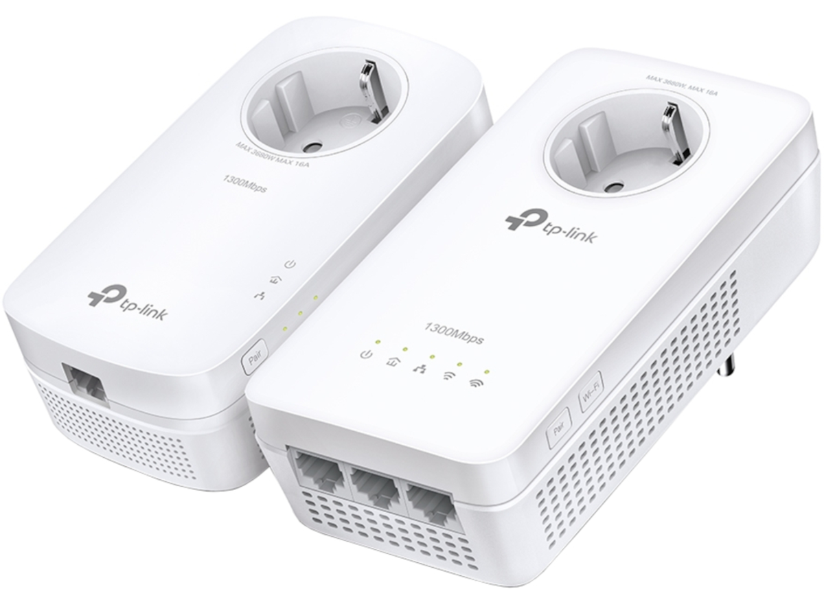TP-LINK | AV1300 Gigabit Passthrough Powerline AC1200 Wi-Fi удължител | TL-WPA8631P | 1300 Mbit/s | Ethernet LAN (RJ-45) портове 3 | Без Wi-Fi | Допълнителен контактTP-Link TL-WPA8631P. Максимална скорост на пренос на данни: 300 Mbit/s, Мрежови стандарти: IEEE 802.11n, IEEE 802.11a, IEEE 802.11ac, IEEE 802.11b, IEEE 802.11g, Захранващ щепсел: Тип E / F. Консумирана мощност (типична): 11 W. Цвят на продукта: Бял, Тип антена: Вътрешна. Поддържани операционни системи Windows: Windows 10, Windows 8, Windows XP, Windows Vista, Windows 8.1. Ширина: 75 мм, Дълбочина: 42 мм, Височина: 152 мм