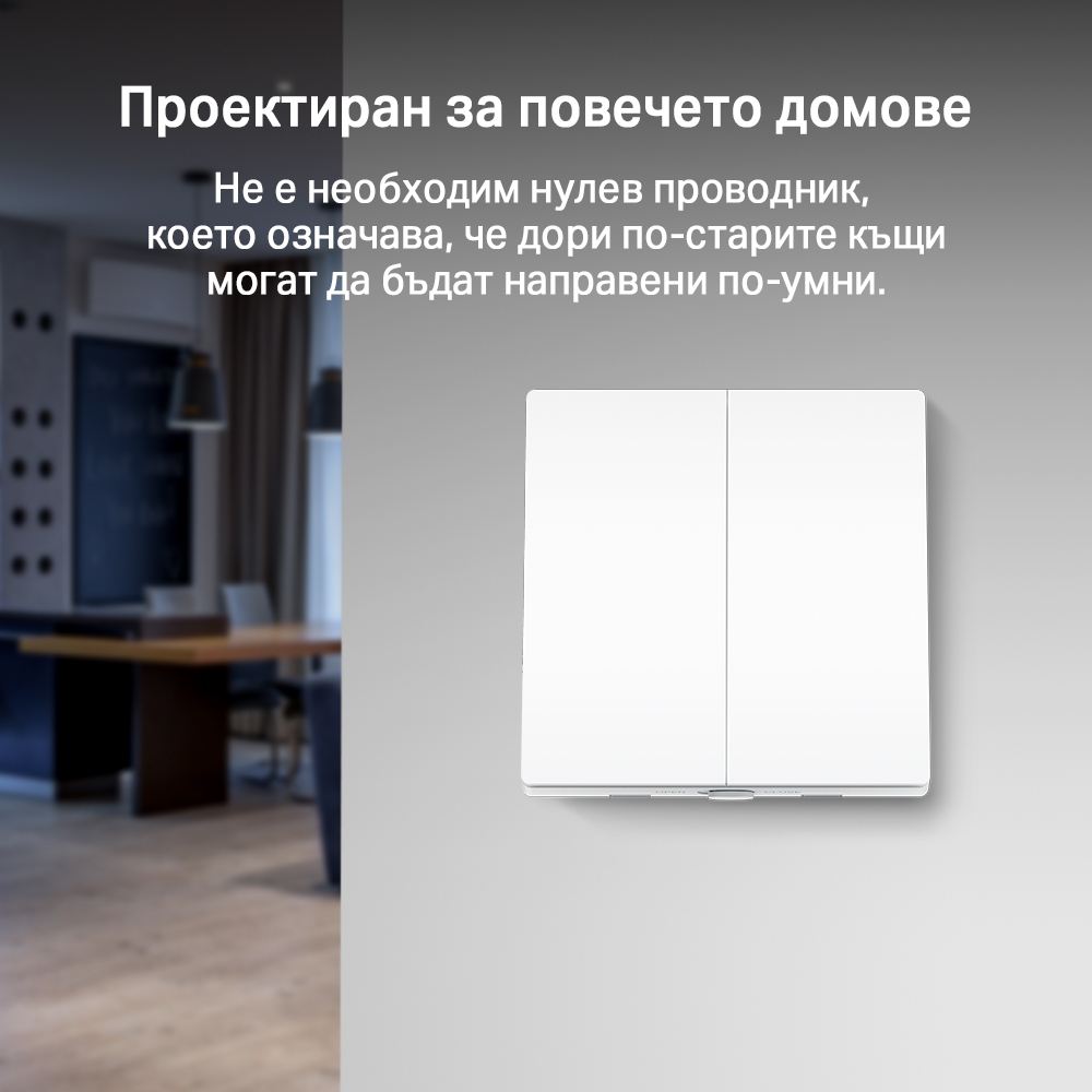 Интелигентен двоен ключ TP-Link Tapo S220 (изисква Tapo Hub)Отдалечено управление - Мигновено включване/изключване на осветлението, където и да сте, чрез приложението Tapo.Гласово управление - Управлявайте вашия ключ с гласови команди чрез Amazon Alexa или Google Assistant.График - Настройте предварително график за автоматично управление на устройства.Режим Далеч - Автоматично включване и изключване на светлината по различно време, за да изглежда, че някой си е вкъщи.Смяна на батерията без инструменти- Лесно сменете батериите след инсталиране, без нужда от други инструменти.Не е необходим нулев проводник- Супер лесно окабеляване. Не е необходим нулев проводник.Необходим е хъб—Tapo хъб е необходим, за да поддържа всички интелигентни функции.