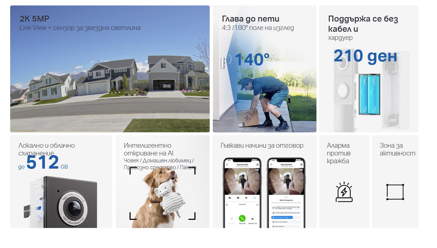 Интелигентен видео звънец TP-LINK SmartDoorbell D235 / TAPO D235 - Black - PN TAPO D235