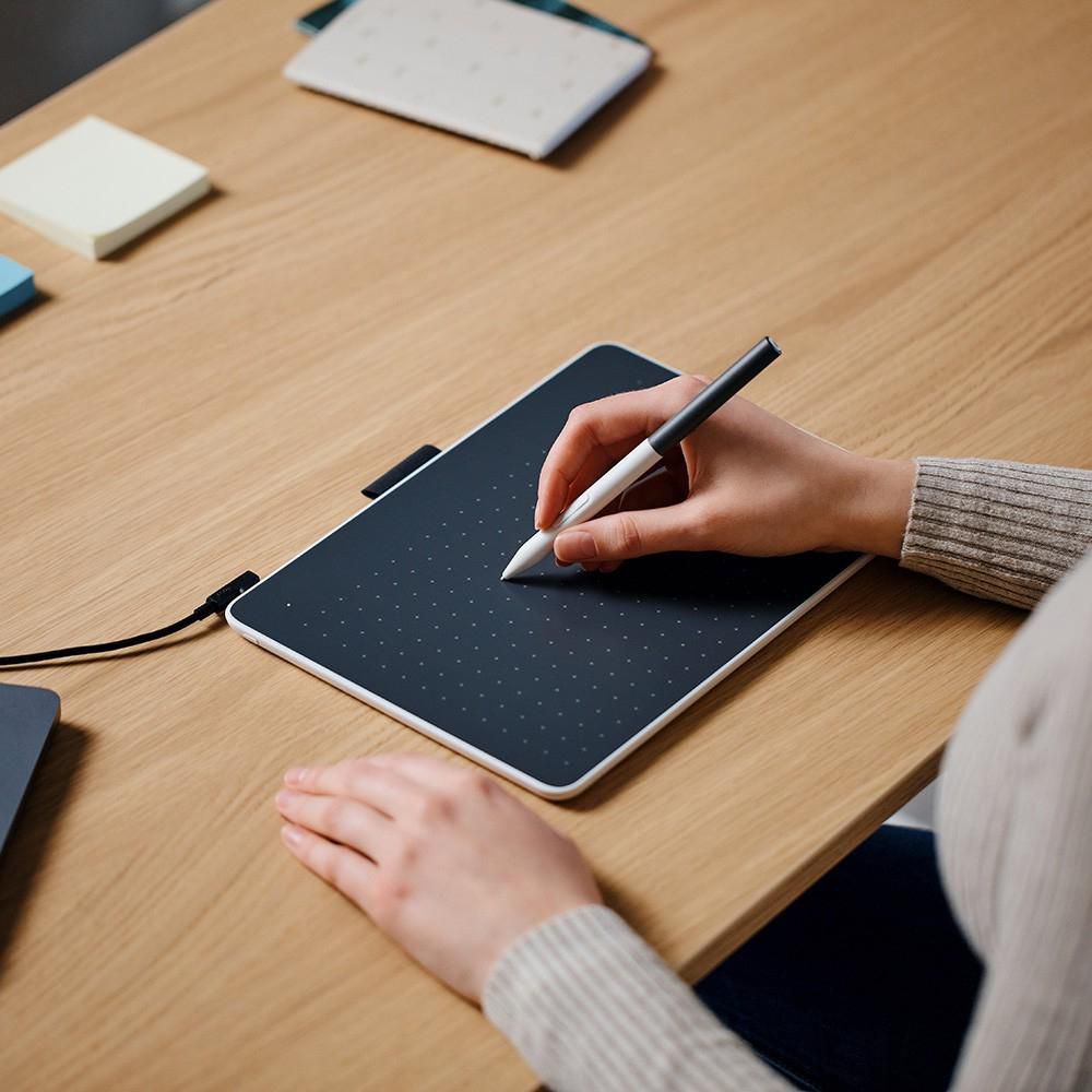 Малък графичен таблет wacom Tablet One - SmallСкицирайте, рисувайте и редактирайте снимки с естествени движения на писалката. С високочувствителната, ергономична и чувствителна на натиск писалка можете да скицирате, рисувате, рисувате, редактирате снимки и да анотирате PDF файлове по естествен начин. Светлинната писалка не се нуждае от батерия и е удобна за държане дори по време на дълги работни дни. One by Wacom е съвместима с повечето приложения за творчески софтуер с писалка, както и с множество приложения и платформи за онлайн обучение, които работят на PC, Mac и Chromebook. Малкият таблет заема много малко място, но ви дава достатъчно място да развихрите креативността си и да правите анотации.